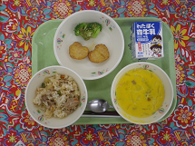 豚肉ときのこのガーリックピラフ / 牛乳 / チキンナゲット