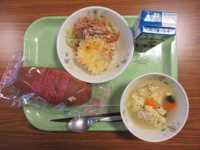 黒パン / 牛乳 / ツナサラダ / ふわふわたまごのスープ