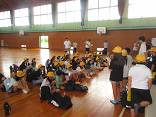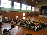 10:15 体育館で出発式です。みんな、わくわくしています。